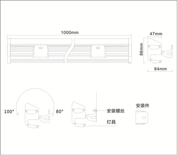 可选项:灯具长度、功率、光色等可非标定制。