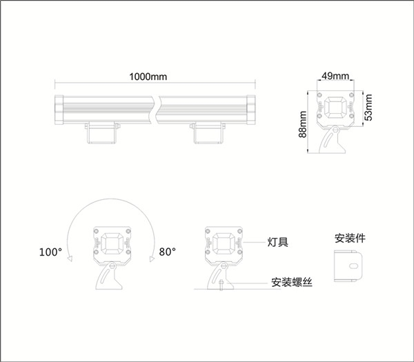 可选项:灯具长度、功率、光色等可非标定制。